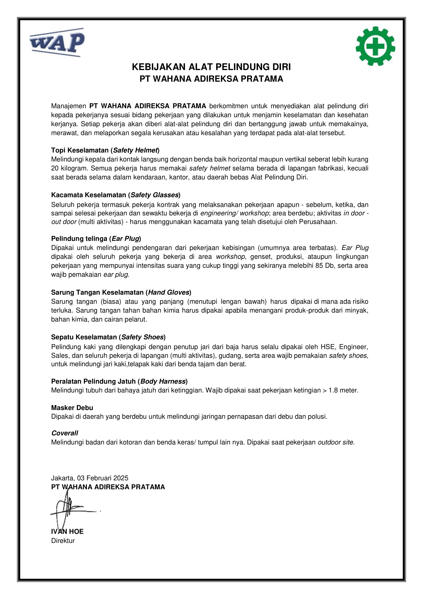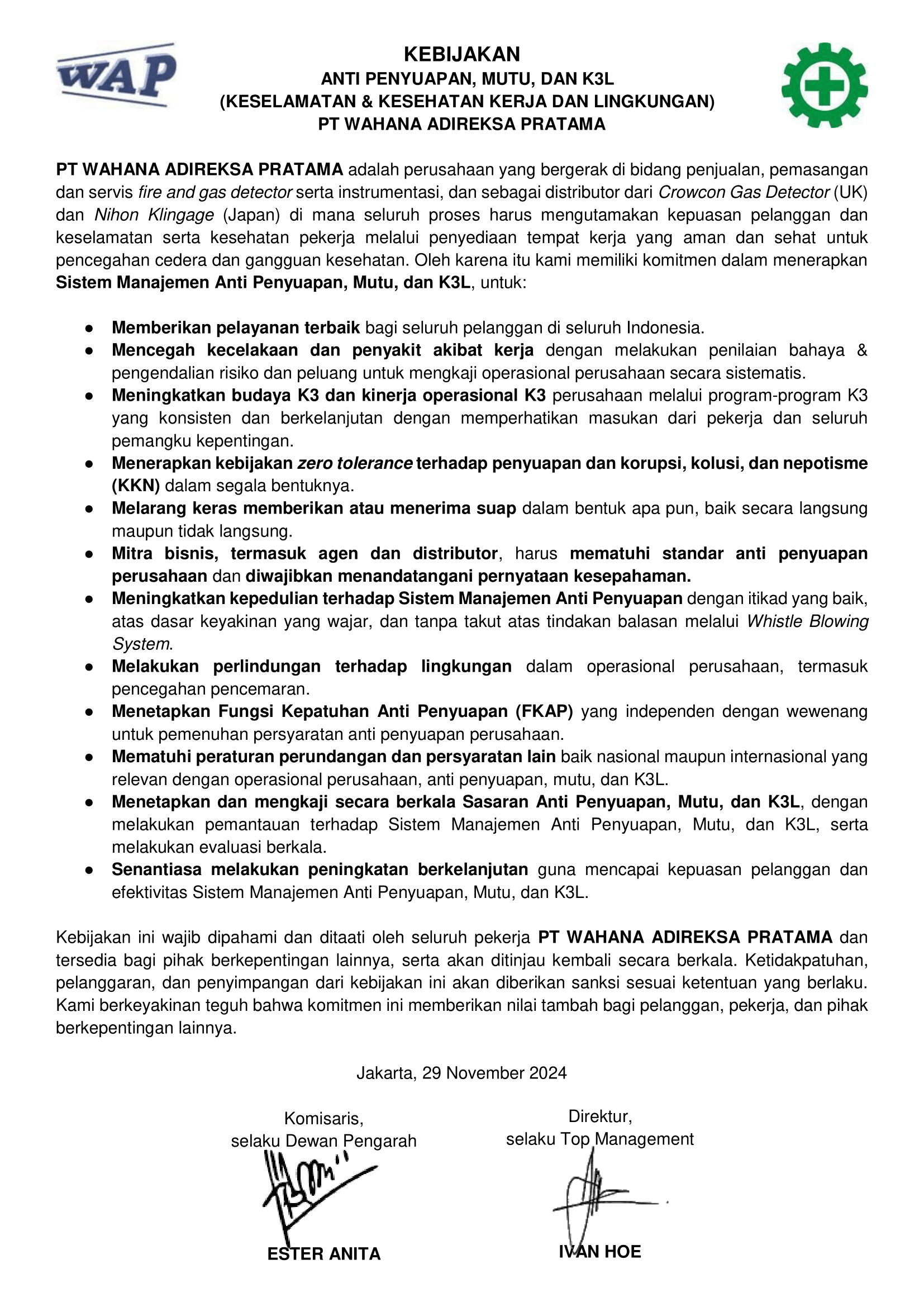 We are a company that has dozen years of experience in handling the needs of oil and gas industry. To be always committed to the success of a project that we handle, we are certified with SNI ISO 37001:2016, ISO 9001:2015, and EN ISO 45001:2023