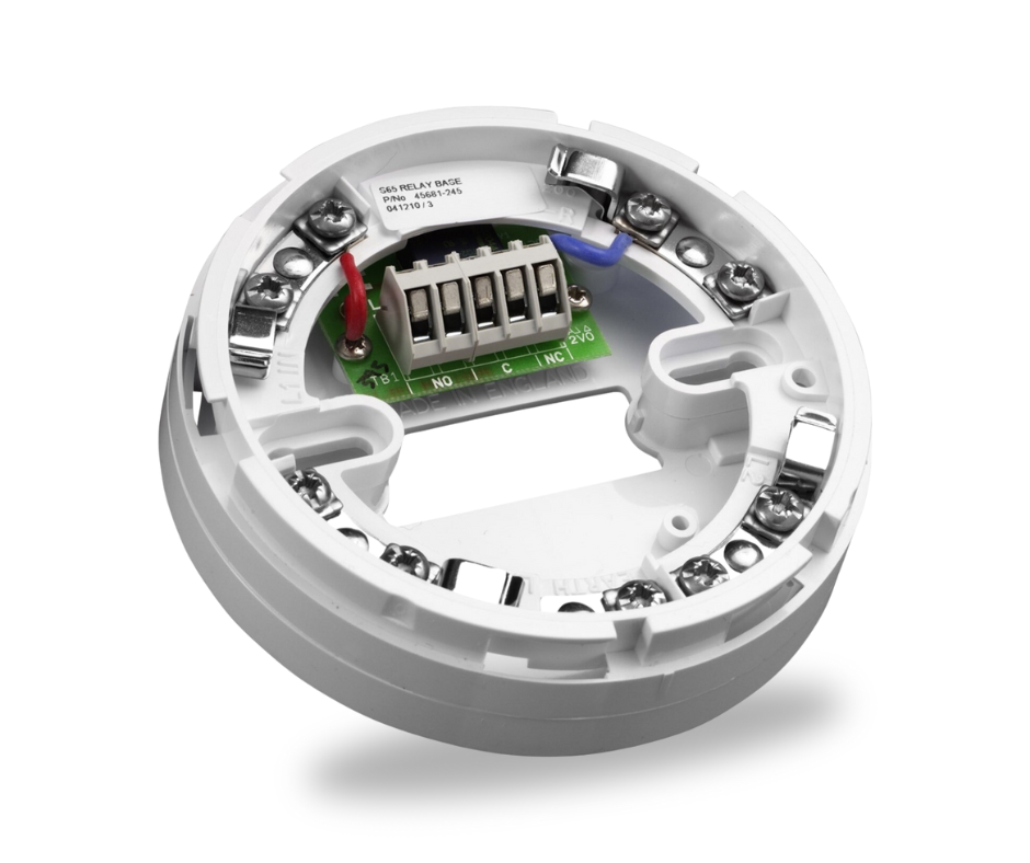 The base provides one set of volt-free, changeover (form C) contacts that change state when the detector signals an alarm.