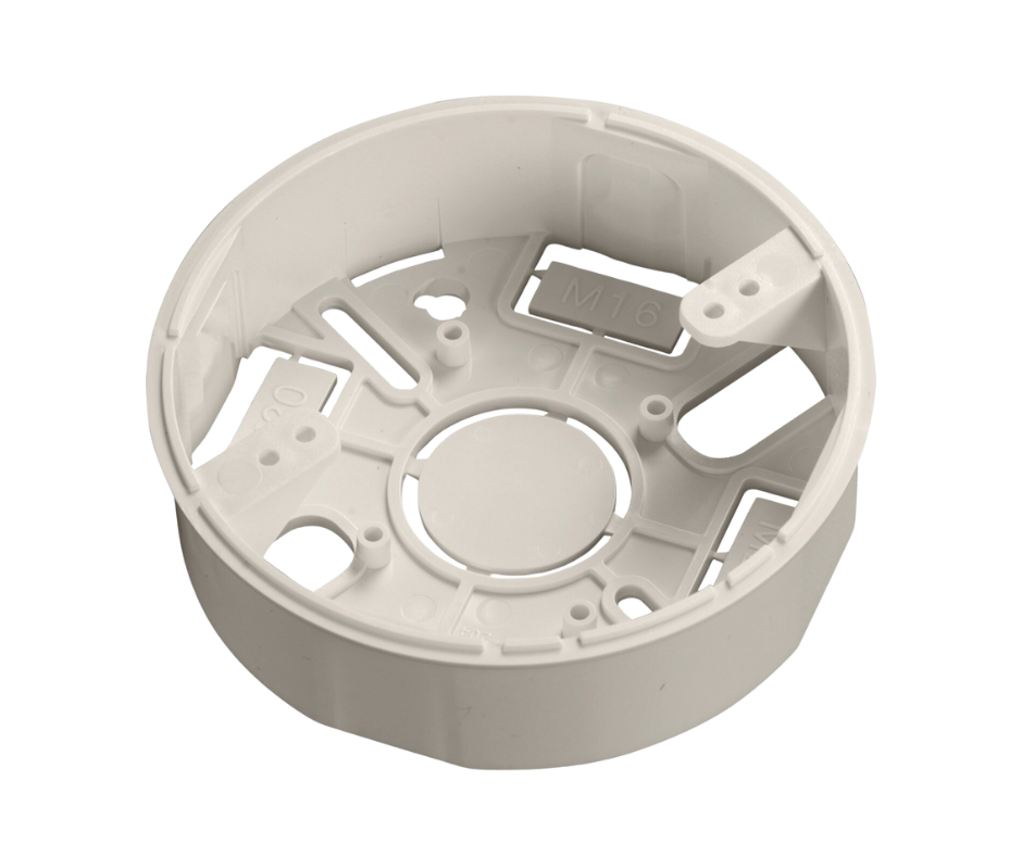 The Conduit Box is a versatile accessory for surface mounting Apollo bases. The box has knockouts to accept PG16 or M20 cable glands, conduit or mini trunking. Self-tapping screws are included to fit the detector base to the conduit box.