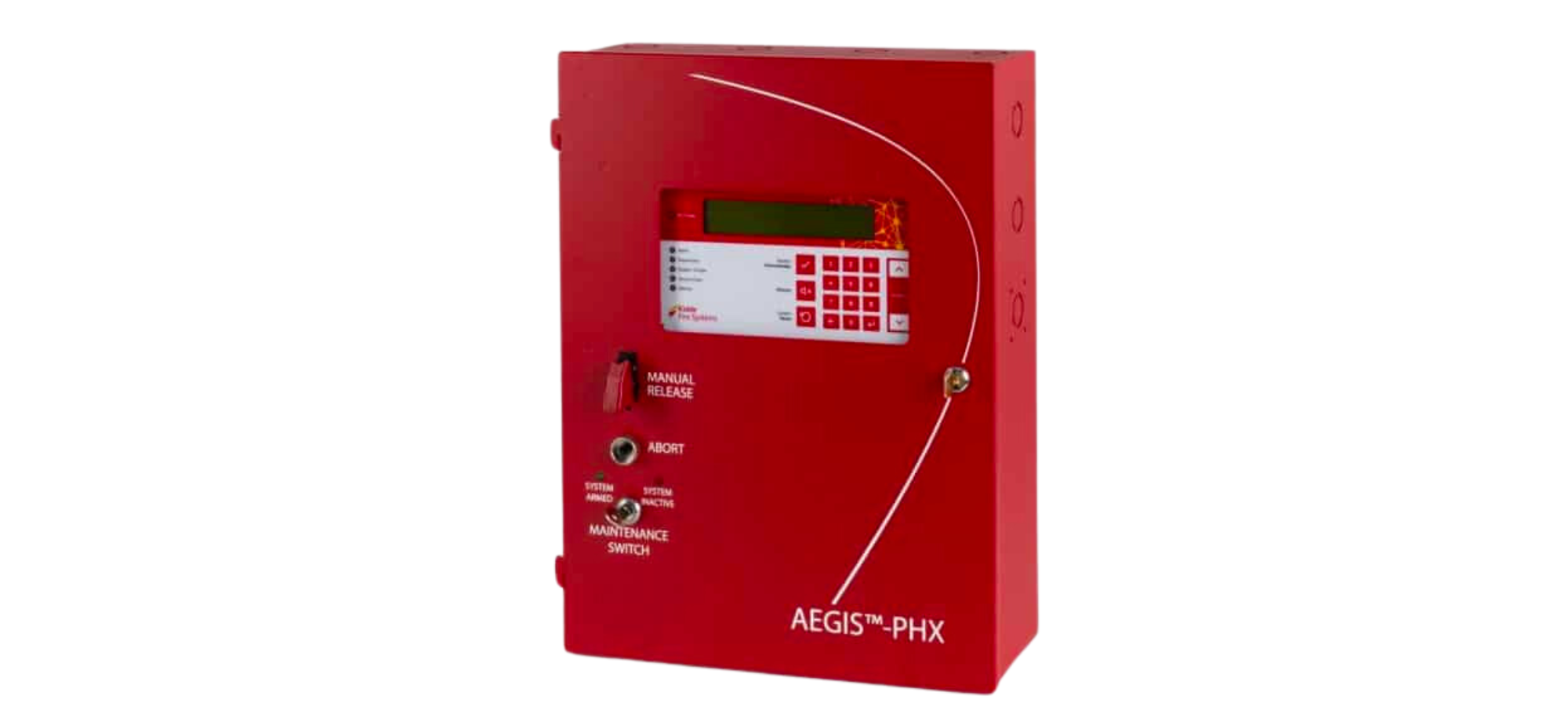 The AEGIS-PHX is purpose-built for special hazard fire suppression applications using gaseous agents (Chemical, CO2, Inert Gas), chemical agents (Wet and Dry Chemical), or water-based solutions. It combines exceptional flexibility and user-friendly operation for both technicians and end-users, while preserving the trusted reliability and suppression-focused features that have defined this product line for decades. Like other Kidde Fire Systems control units, the AEGIS-PHX incorporates Triple Redundancy (Triple-R) safeguards, minimizing the risk of accidental suppression system activation caused by microprocessor failures or false signals.