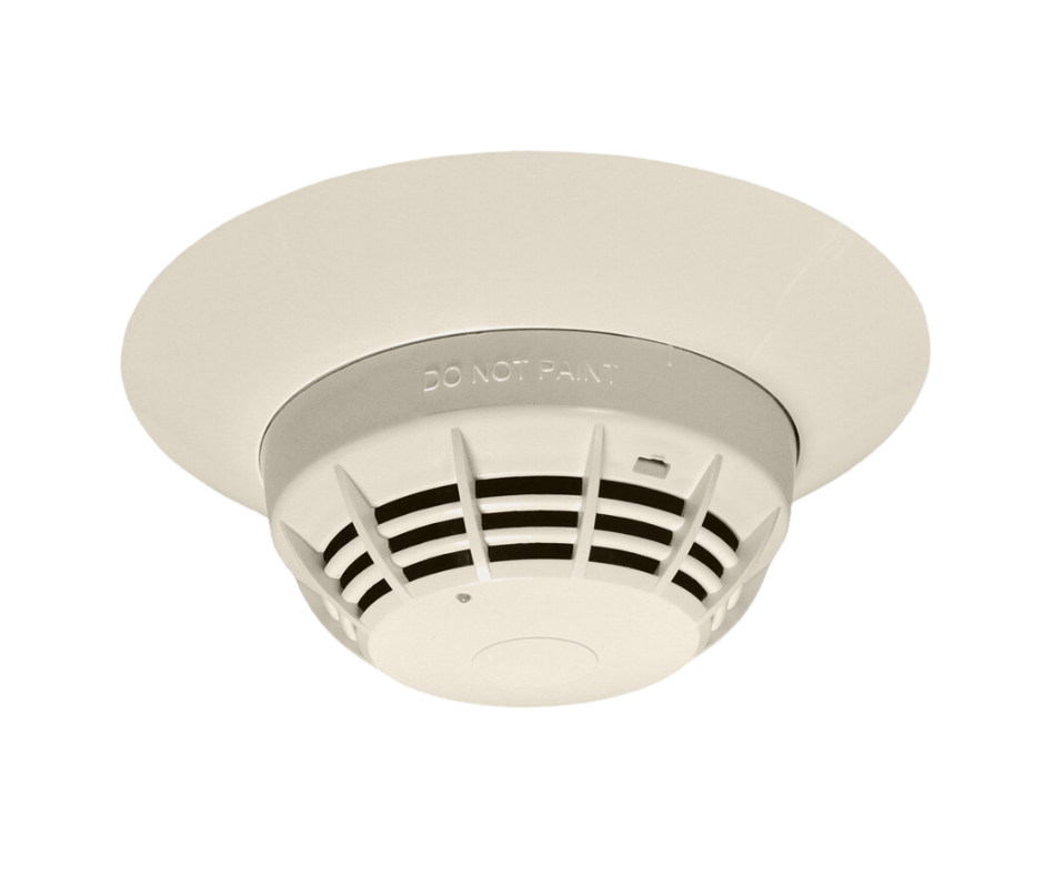 The DS-HFS Heat Detector is an intelligent device equipped with a fixed-temperature sensor that triggers at 135°F (57°C) to detect heat generated by fire.