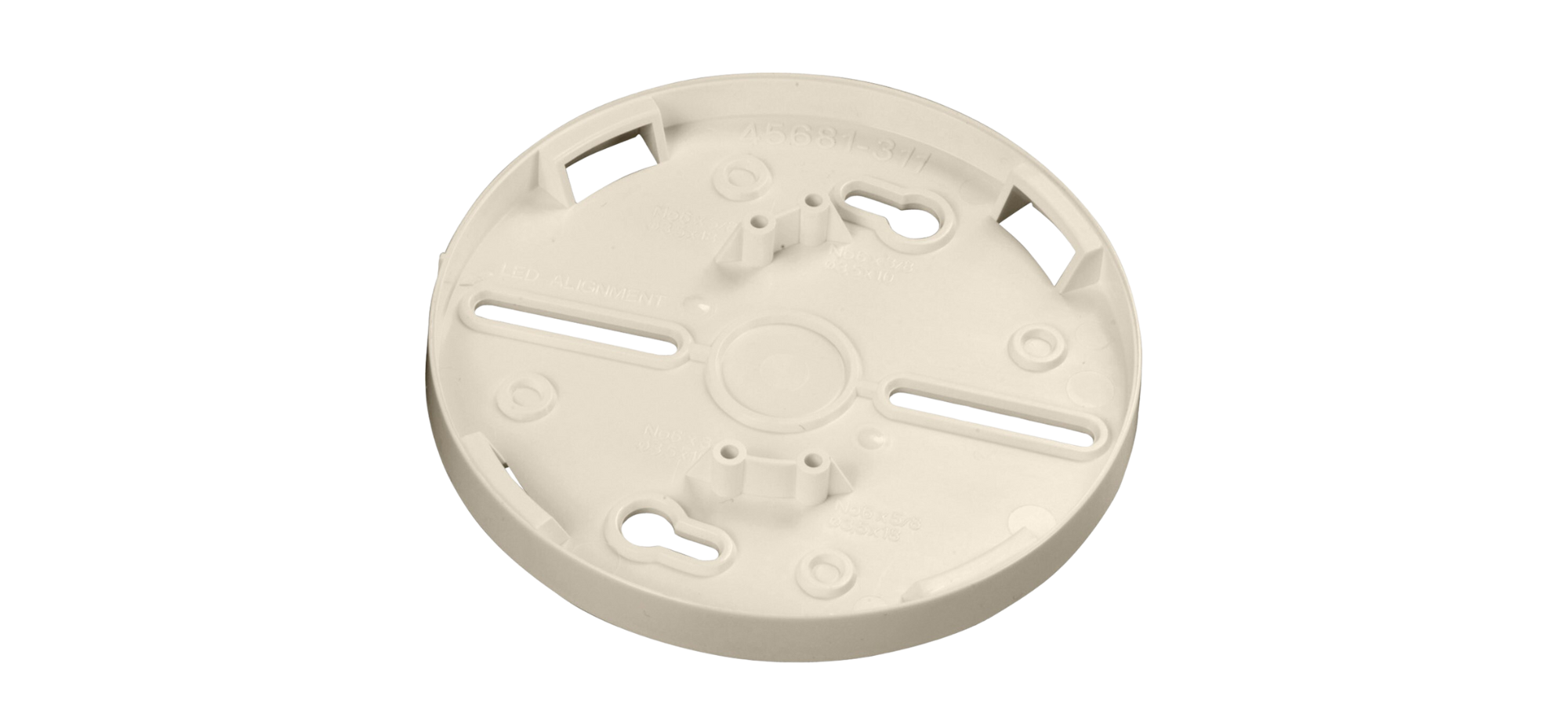 The Mounting Plate allows surface-mounted cabling to be fitted to a loop-powered sounder base.
